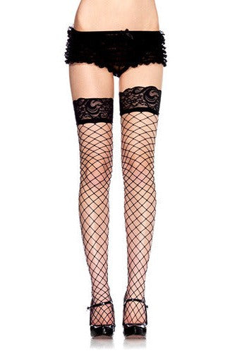 Realizzate in rete a maglie larghe, queste calze autoreggenti mettono in risalto le gambe con un design che valorizza la silhouette.